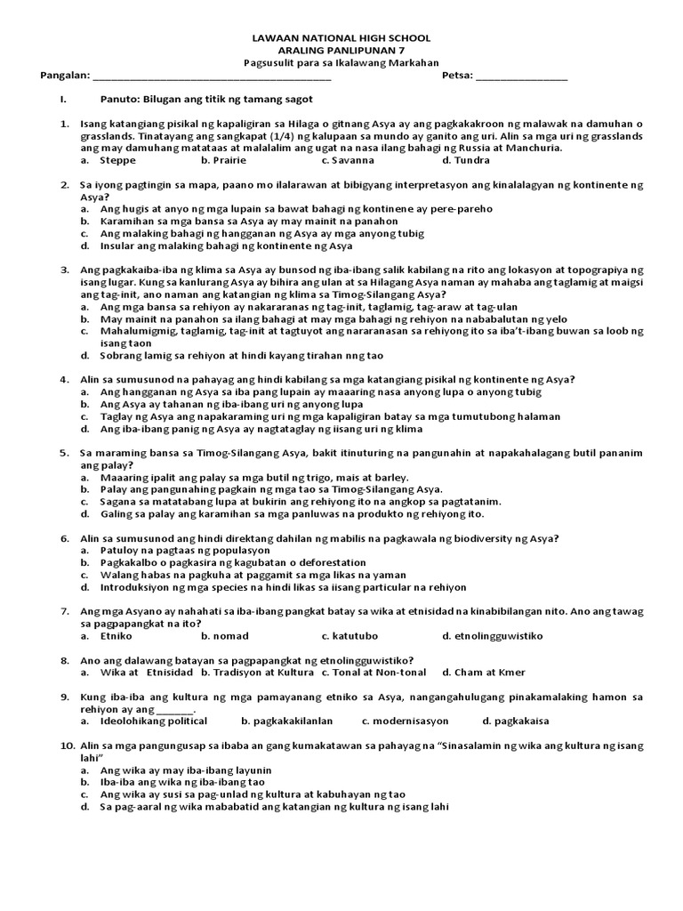 Pagkalbo o pagkasira ng kagubatan o deforestation C. A Kapitalismo b Renaissance c Nasyonalismo d Rebolusyong Industriyal 6 Ang mga sumusunod maliban sa isa ay ang dahilan kung bakit hindi kaagad nasakop ng mga Kanluranin ang bandang Kanlurang Asya. Saan matatagpuan ang bangkay ni Don Rafael na siyang hinahanap ni Crisostomo Ibarra.