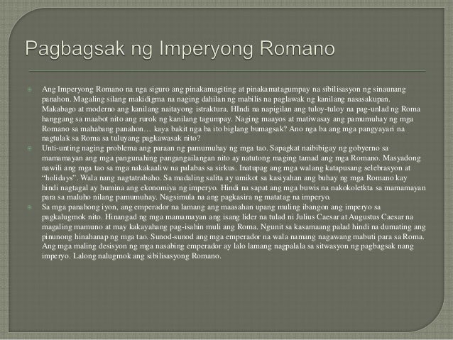 Ito ay isang tradisyonal na ginagawa tuwing Miercoles Santo upang sariwain ang. 13102015 Ang Pax Romana ay isang yugto sa panahon ng pamamayagpag ng Imperyo ng mga Romano kung saan may matagal na panahon ng kapayapaan at maliit na paggalaw ng mga Romanong militar. Ano ang Pax Romana.