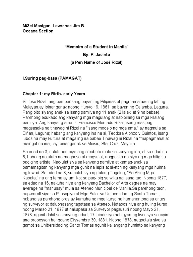 Iyong mga nunoy pawang mga Tsinoy. Protacio Rizal Mercado y Alonzo Realonda ay isang pintor iskulptor henyo manunulat manggagamot at nakilala sa buong mundo dahil sa kanyang mga kadakilaang pagambag sa ating bansa noong panahon ng. Ikay makabayan sa pusot isipan.