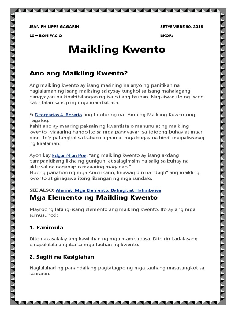 Blog Keep up to date with the latest news. Human translations with examples. 29092020 Ito ang uri ng maikling kuwentong bihirang isulat sapagkat may kahirapan ang paglalarawan ng kaisipan.